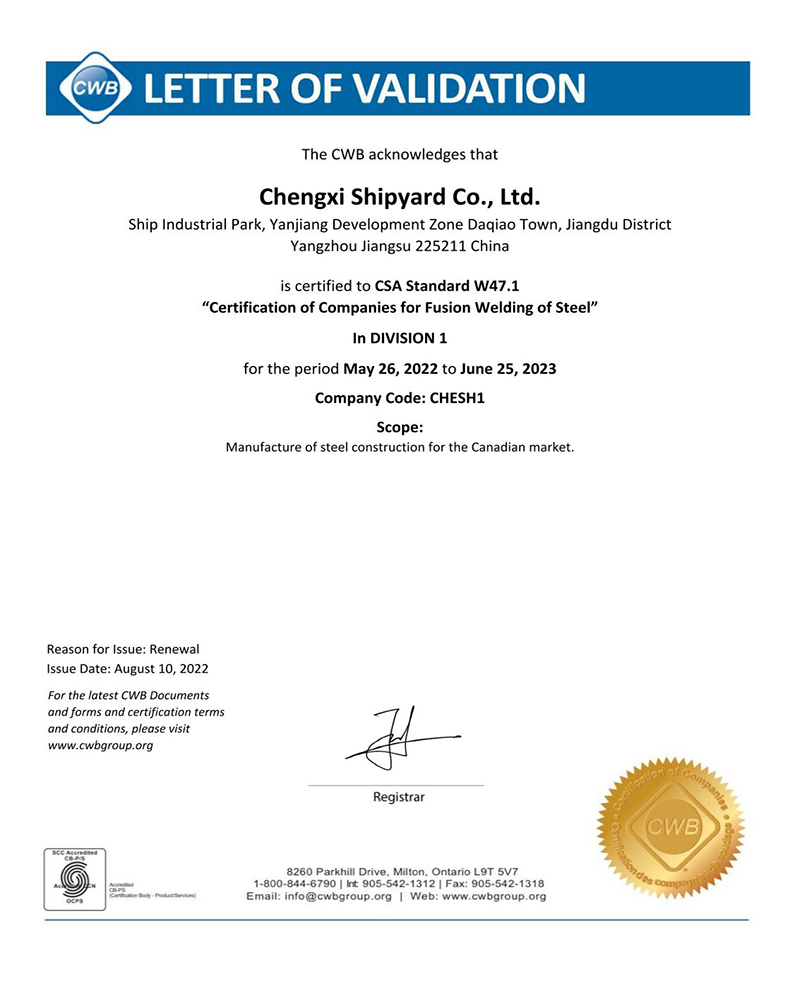公司造船高效優(yōu)質(zhì),始終致力于打造技術(shù)和產(chǎn)品核心競(jìng)爭(zhēng)力,主建船型已成功涵蓋散貨船、支線(xiàn)箱船、MR油輪三大主流船型及自卸船、瀝青船、化學(xué)品船、重吊多用途船、木屑船等細(xì)分市場(chǎng)船型,形成了造船產(chǎn)品結(jié)構(gòu)多...